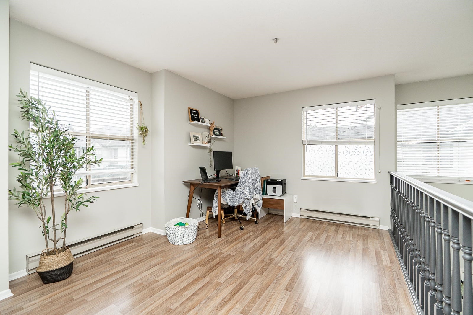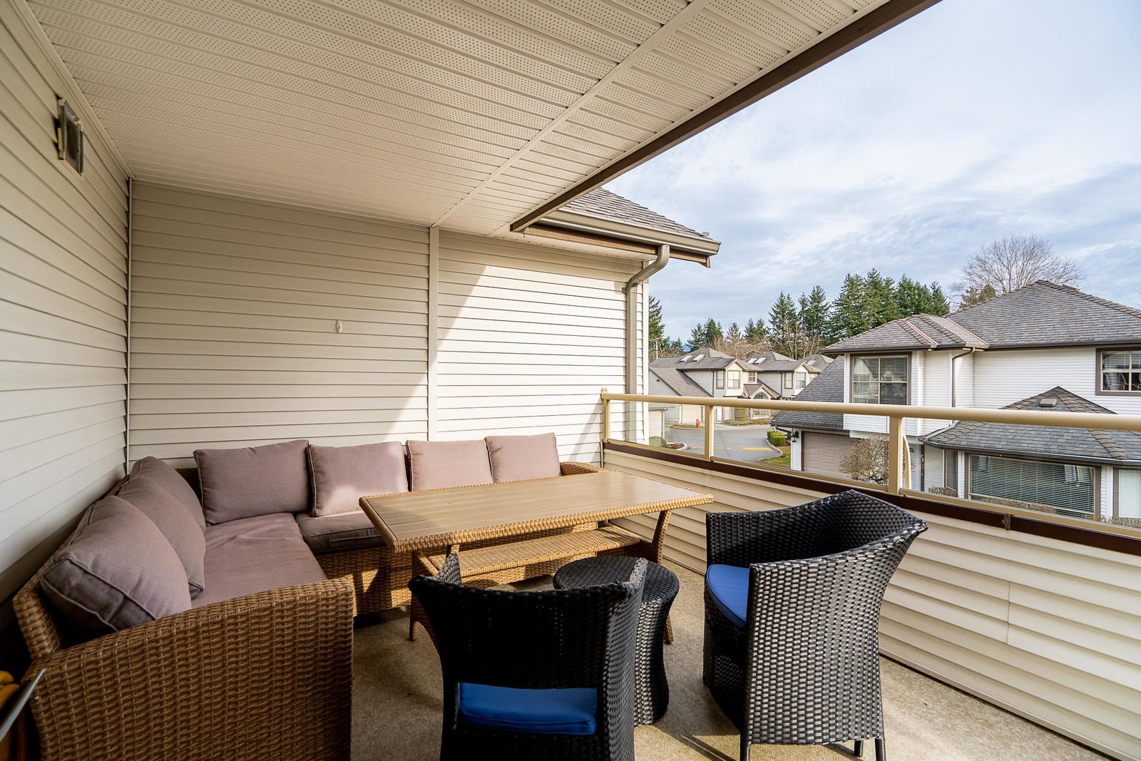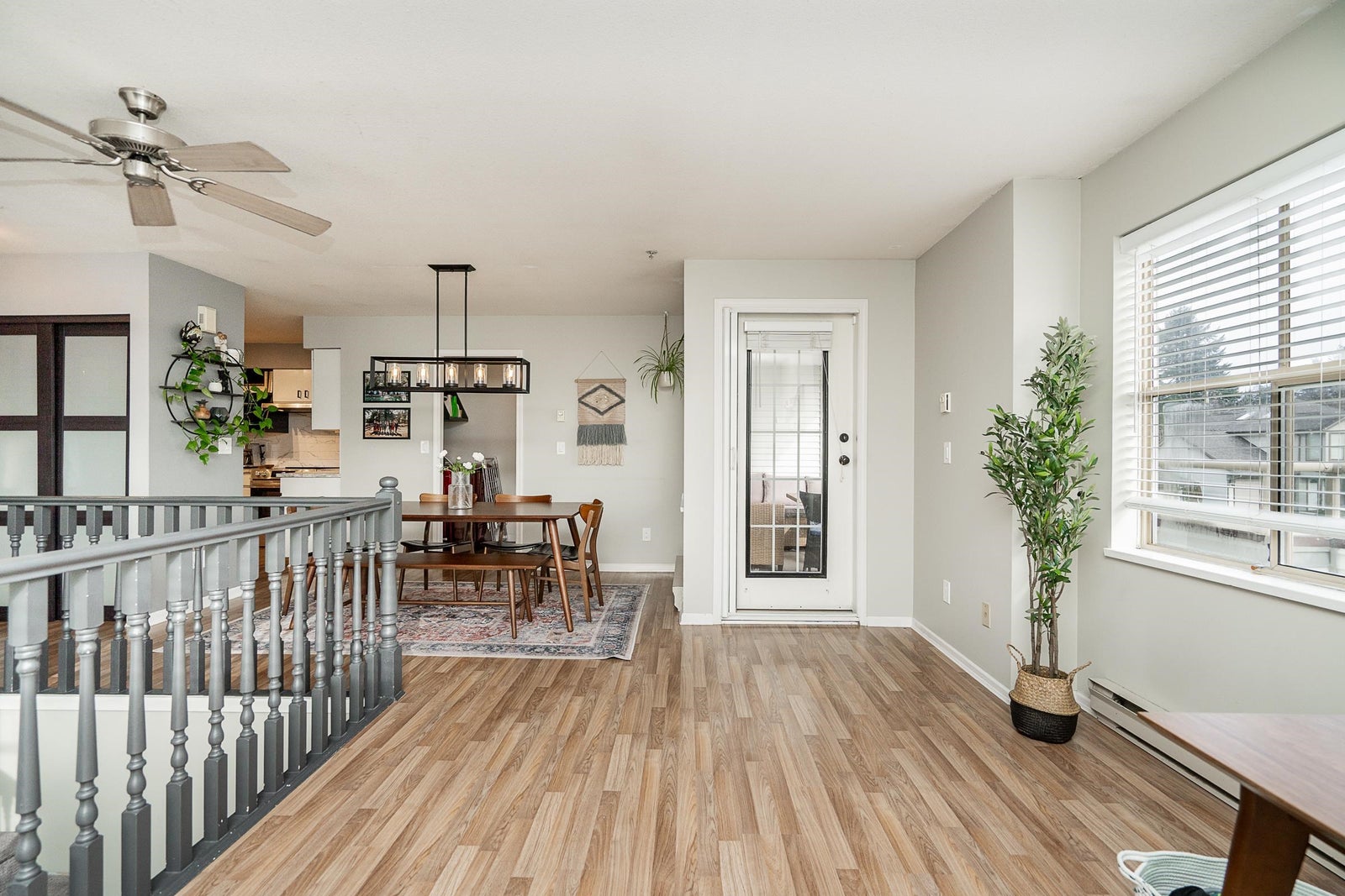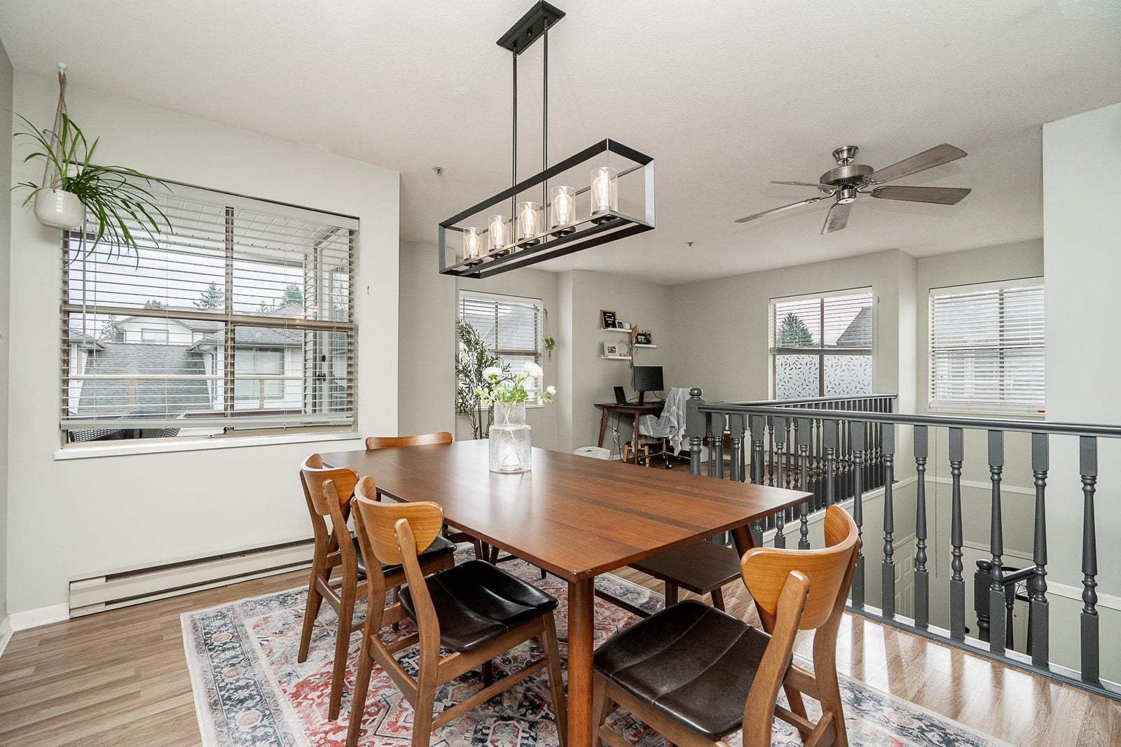 Welcome to this beautifully updated, bright and spacious upper unit townhome at Windsor Oak in Pitt Meadows. Perfect for families, this home offers over 1,650 square feet of living space in a family-friendly neighbourhood, with several upgrades, including the gourmet kitchen with SS appliances, bathrooms, garage flooring and more. Spacious, open layout, with large flex / den area (which could be converted into a third bedroom), leads seamlessly out to your extra large deck, perfect for entertaining. Two large bedrooms and two full bathrooms complete the space. Bonus - double two-car garage with separate doors. Unbeatable location - just steps from Pitt Meadows Elementary School, shopping, West Coast Express, Foamers' Folly, parks and more.