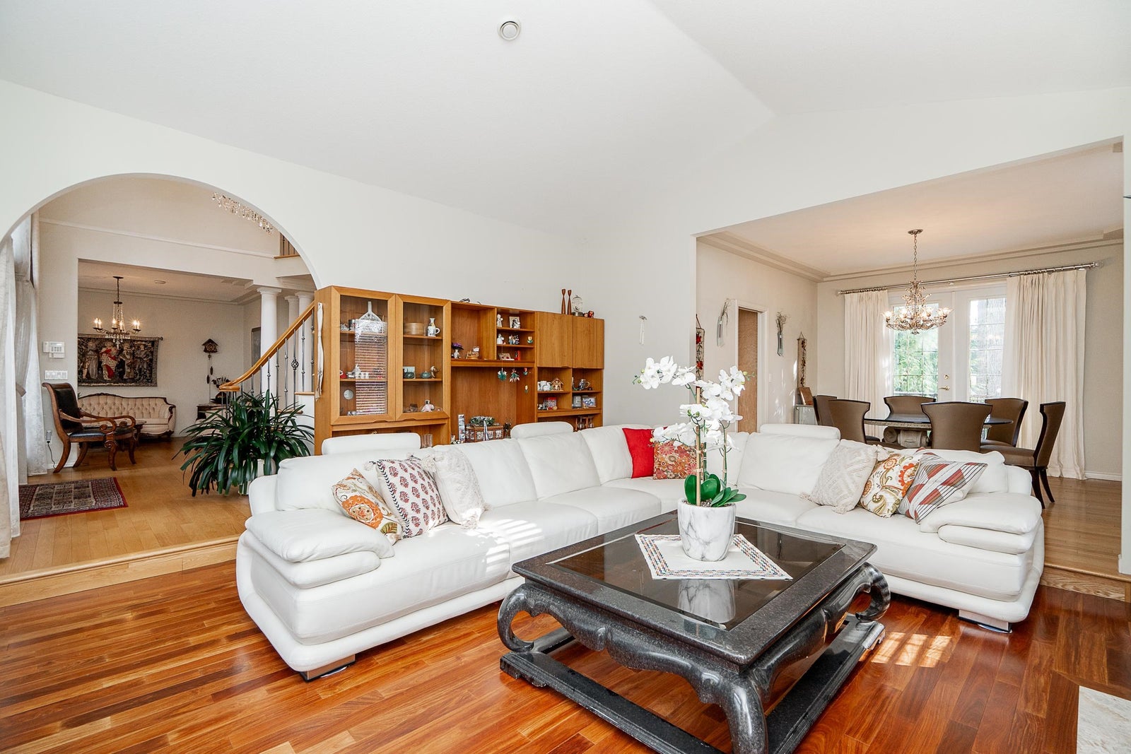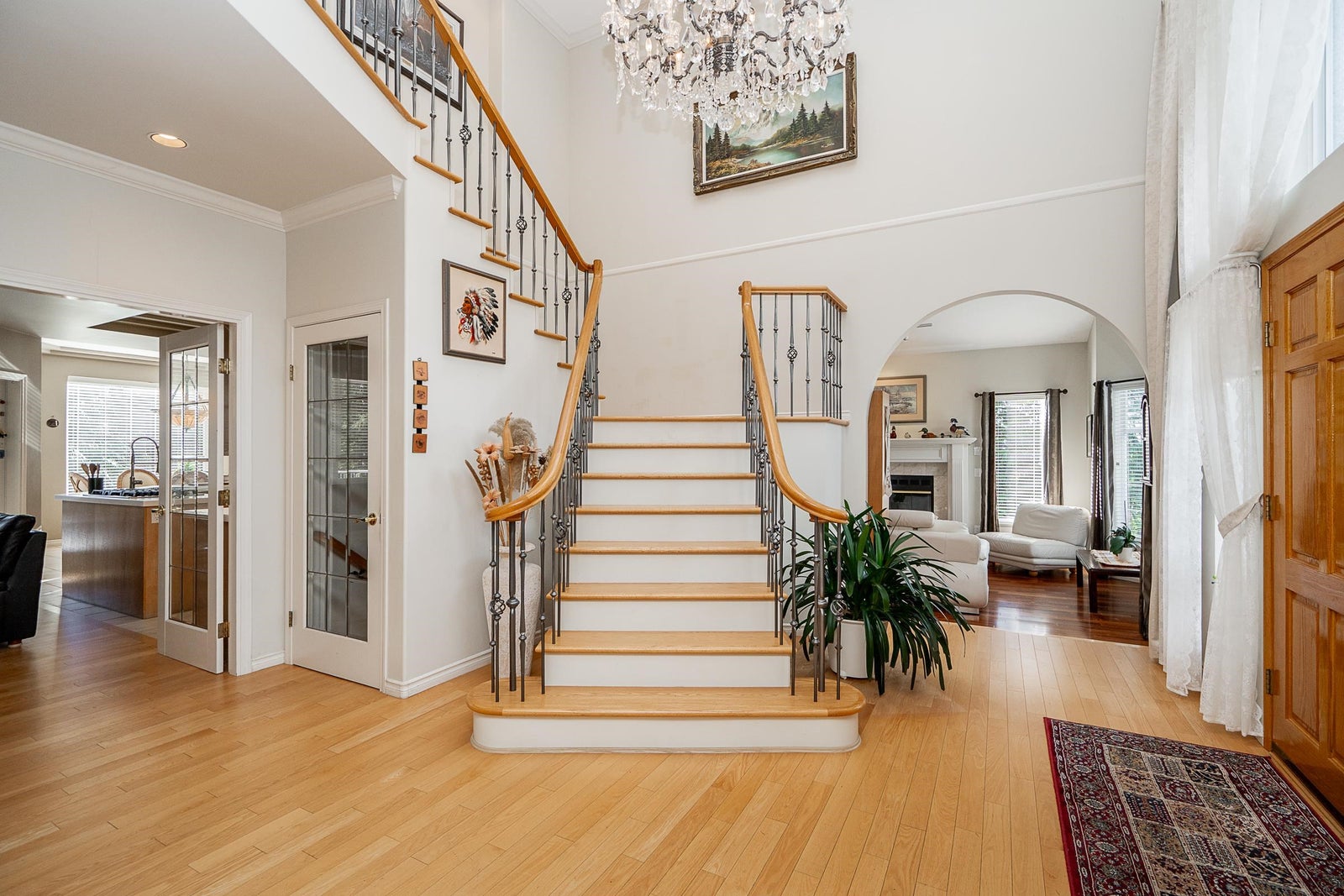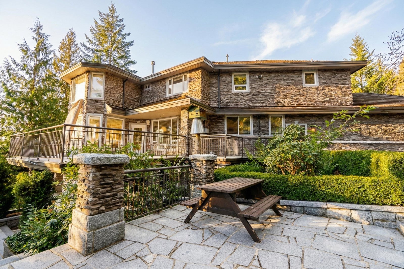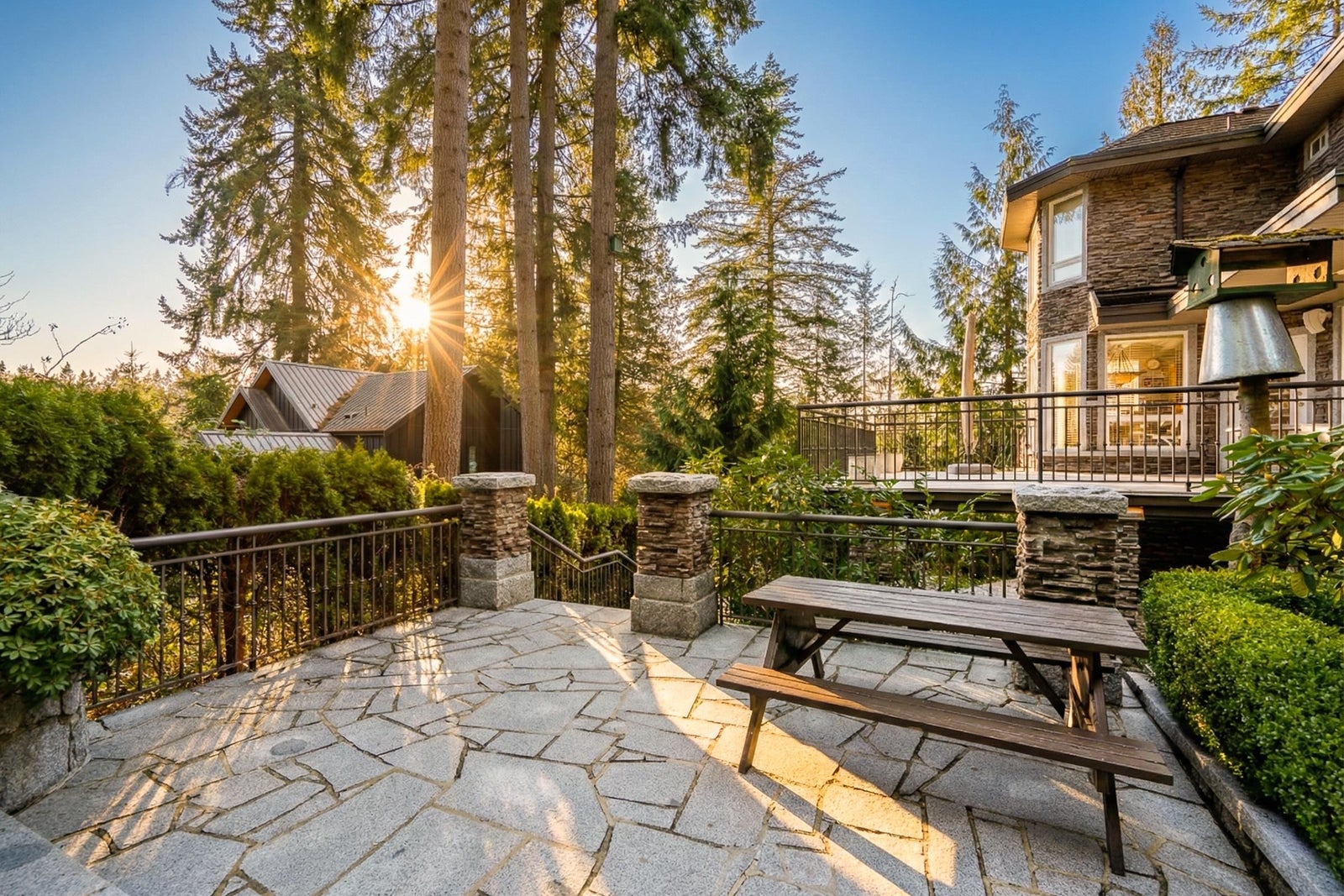 Sophisticated Anmore estate with full one-acre, private lot and SUBDIVISION POTENTIAL. Surrounded by mature landscaping, this residence features an upper and a lower driveway equipped with electric gates for a grand entrance. Step inside to the inviting foyer with beautiful curved staircase, front living room with vaulted ceiling, and a spacious kitchen with access to the large, covered deck, allowing for seamless indoor-outdoor living. A true entertainer’s dream. The main also features a full bathroom and laundry room with second staircase to upper level, where you’ll find 4 large bedrooms and 3 bathrooms including the stunning en-suite. Down offers a spacious suite, full bathroom, media room and outdoor patio. Three car garage and endless opportunities in this beautiful neighbourhood.