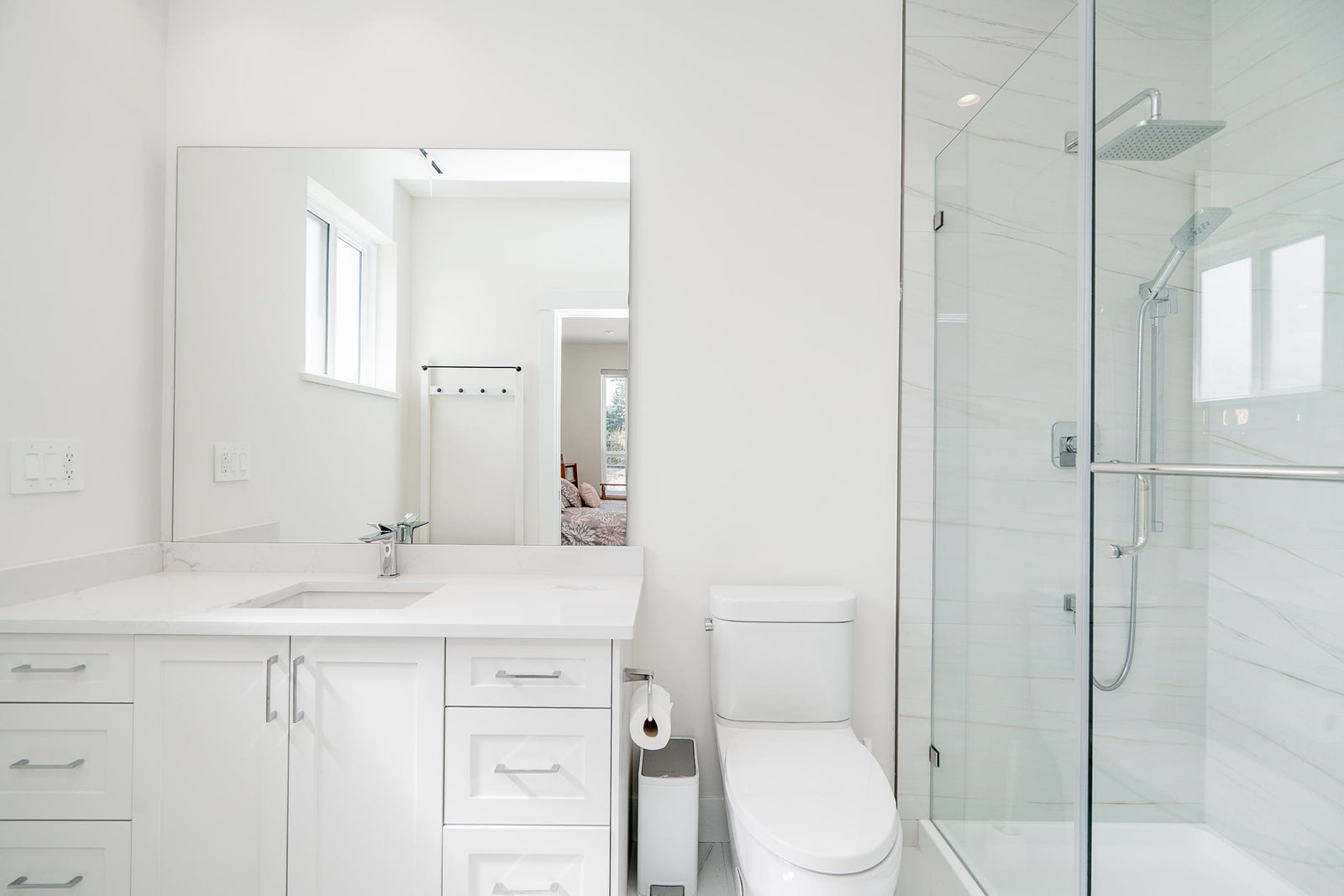 Elegant and luxurious living in Central Coquitlam. This extraordinary home with outstanding curb appeal is situated in one of Coquitlam's most desirable neighbourhoods, offering 5,200+ sq/ft of living space and located on a massive 9,700+ sq/ft lot. Bright, spacious and open layout, featuring 7 beds, 6.5 baths, including a guest room on the main w/ full ensuite and the primary retreat upstairs, w/ WIC + spa-inspired ensuite. Additional 3 beds upstairs, all w/ ensuites. 2-bed legal suite on upper level above garage (MORTGAGE HELPER). A/C, triple-car garage + central location - close to Mundy Park, Como Lake Village, Centennial Secondary School, Como Lake Park, schools, shopping & transit.